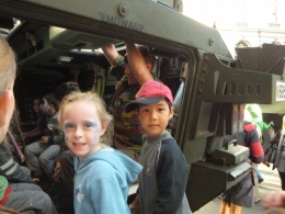 Les enfants étaient serrés comme des sardines et ils n'avancaient pas à l'intérieur, heureusement au bout de 30 min. un militaire a fini par quitter le char d'à côté pour intervenir dans le nôtre afin de faire ressortir les enfants de trop et surveiller que tout le monde passe dans le calme et sans bousculade